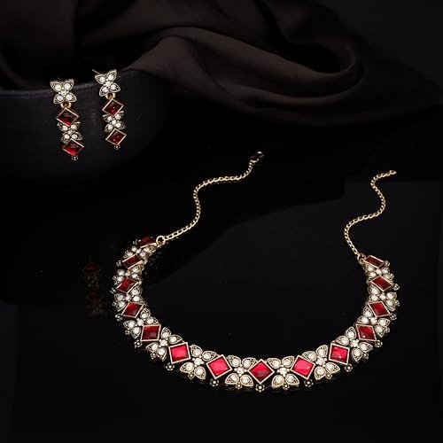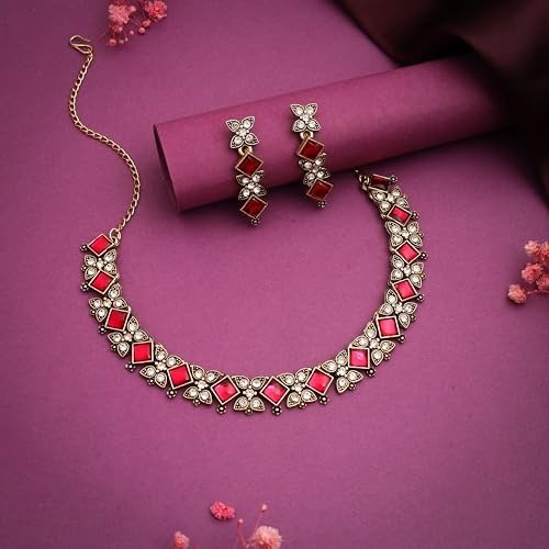 Gold and Silver Polished AD Stone Embellished Choker Necklace Set This exquisite choker necklace set, adorned with polished gold and silver and embellished with AD stones, is more than just an accessory; it represents a declaration of elegance and refinement. Ideal for gifting or as a cherished enhancement to your personal jewelry collection, this set captures the essence of timeless beauty and artistry, guaranteeing that you will shine on any occasion.