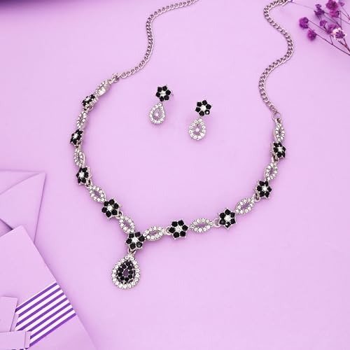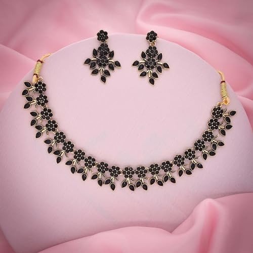 - Sales Offer: Set of 2 Choker Necklaces adorned with Gold and Silver plating, featuring Black and White American Diamond (AD) stones, accompanied by a matching pair of earrings.