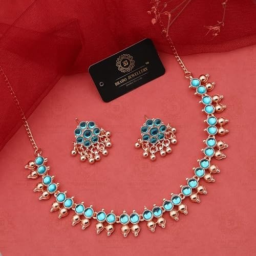 Brado Rose Gold AD Stone Choker Necklace Set with Earrings – Fast Shipping to USA & Canada