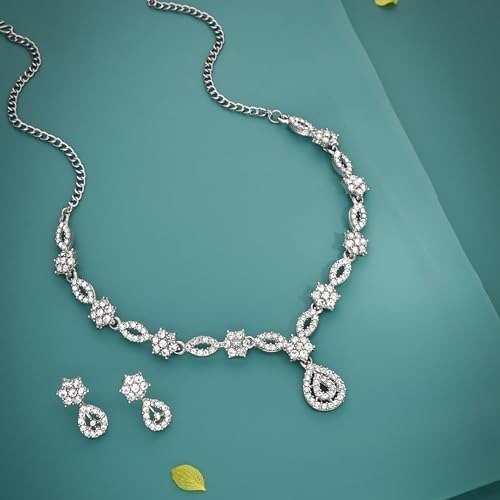 - Sales Offer: Set of 2 Rose Gold and Silver Plated AD Stone Embellished Necklace with Coordinating Earrings.