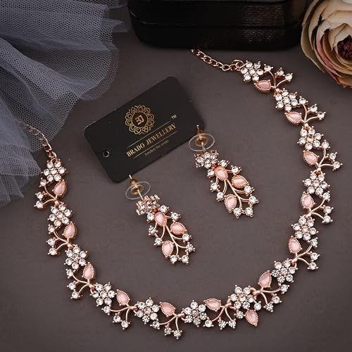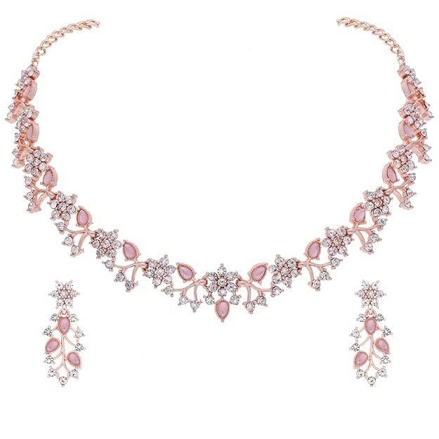 Brado Rose Gold Stone Studded Necklace Set – Fast Shipping to USA & Canada