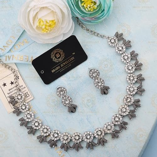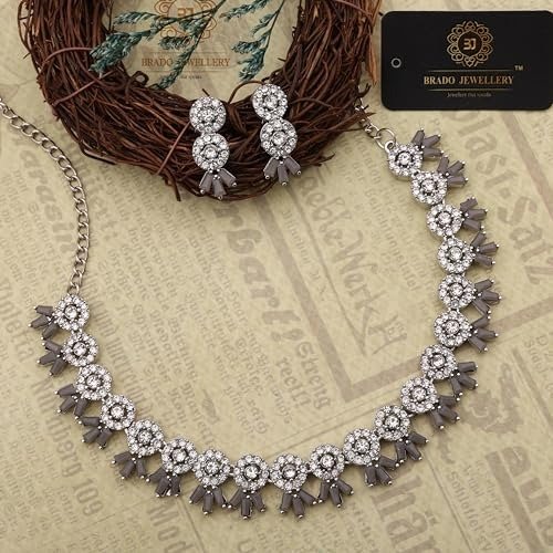 Brado Silver Plated Stone Studded Necklace Set – Fast Shipping to USA & Canada