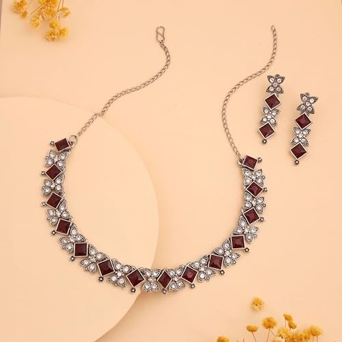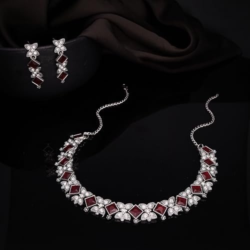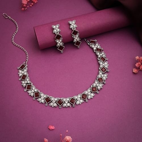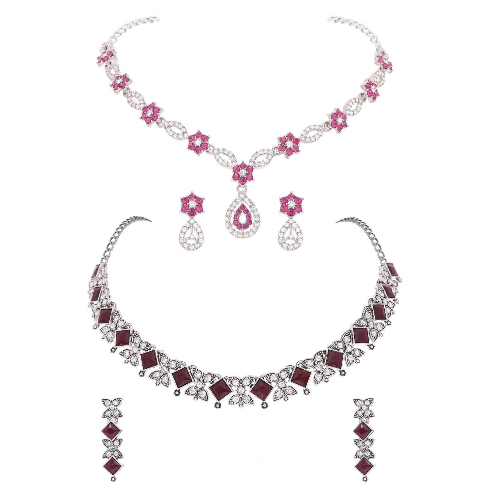 - Sales Offer: Set of 2 Silver-Plated Choker Necklaces Adorned with Stone Accents, Accompanied by a Coordinating Pair of Earrings.