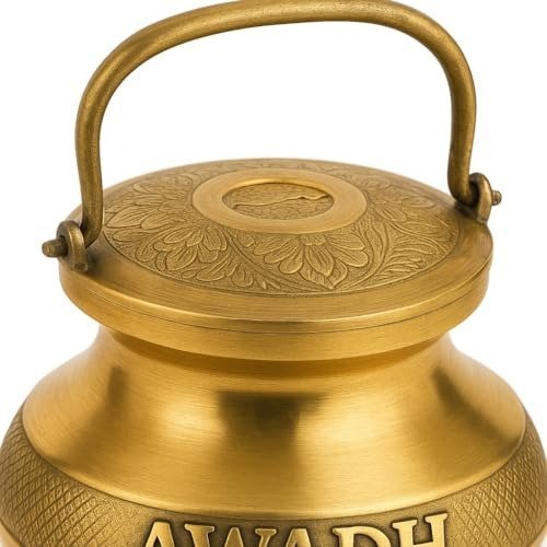 - GENUINE CRAFTSMANSHIP: Classic brass Gangajal kalash featuring detailed engraved motifs and a sturdy lid, ideal for spiritual ceremonies and pooja practices.