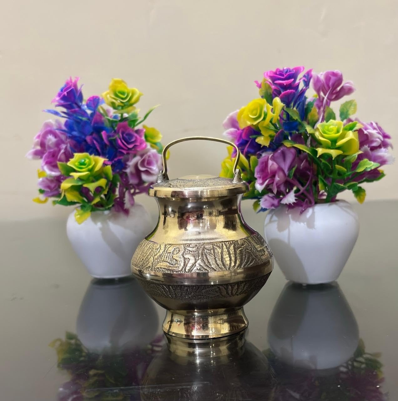 • CLASSIC CRAFTSMANSHIP: This handcrafted brass Gangajal Kalash showcases elaborate engraved motifs and a timeless pot silhouette, complete with a convenient handle for effortless portability.