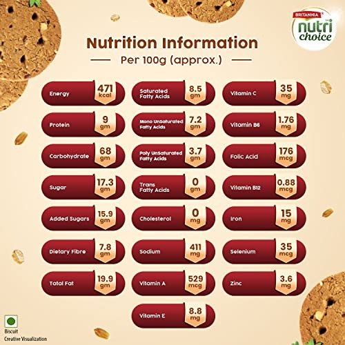 Britannia NutriChoice Herbs is designed to harness the benefits of five powerful herbs: tulsi, turmeric, ashwagandha, amla, and giloy. These fiber-rich biscuits contain no maida and are fortified with nine essential vitamins and minerals to bolster your immune system.
