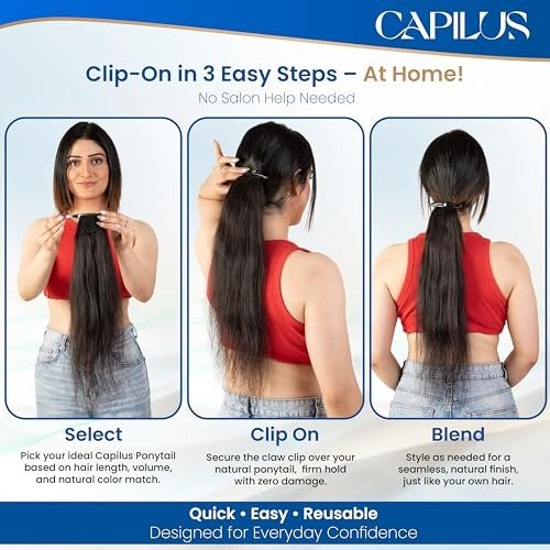 - Flat Clip-In Ponytail for Effortless Application: The streamlined Capilus clip-in ponytail features a secure, flat design that seamlessly integrates with your natural hair. Ideal for daily wear or elevating your look for special events.