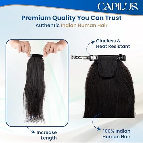 - Variety of Shades and Lengths: Capilus flat ponytail hair extensions are available in natural black as well as other trendy colors to seamlessly blend with your hair. Select from multiple length options to achieve your ideal ponytail style. Crafted from human hair, these extensions are long-lasting, reusable, and simple to care for.