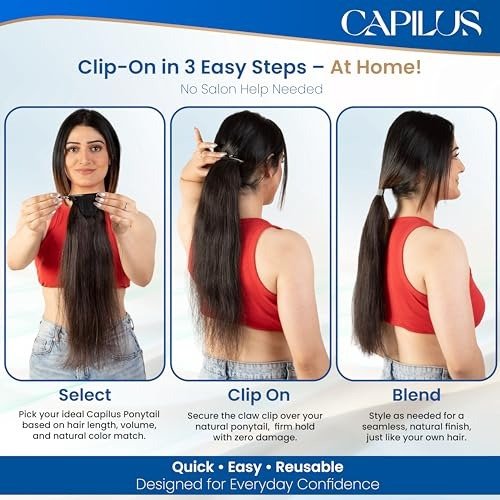 • Sleek Clip-In Ponytail for Effortless Use: The innovative Capilus clip-in ponytail features a flat, secure design that seamlessly integrates with your natural hair. Ideal for daily wear or elevating your look for special events.