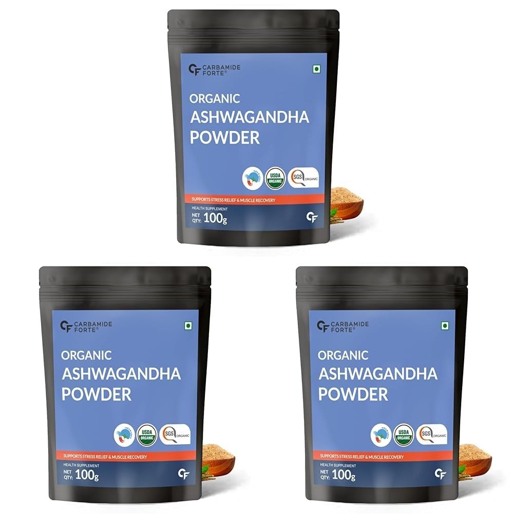 Carbamide Forte CF 100% Organic Ashwagandha Powder – Withania Somnifera – USDA Certified Organic Ashwagandha for Vitality, Strength & Stress Management – 100g Veg Powder (Pack of 3) – Fast Shipping to USA