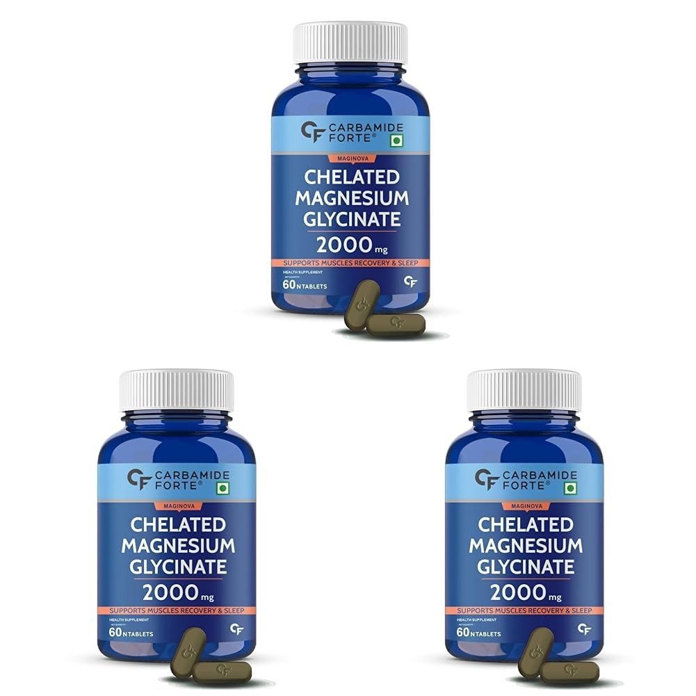 Carbamide Forte Chelated Magnesium Glycinate Supplement 2000mg Per Serving | Magnesium Supplement Supports Muscle Recovery & Better Sleep -60 Veg Tablets (Pack of 3) – Fast Shipping to USA