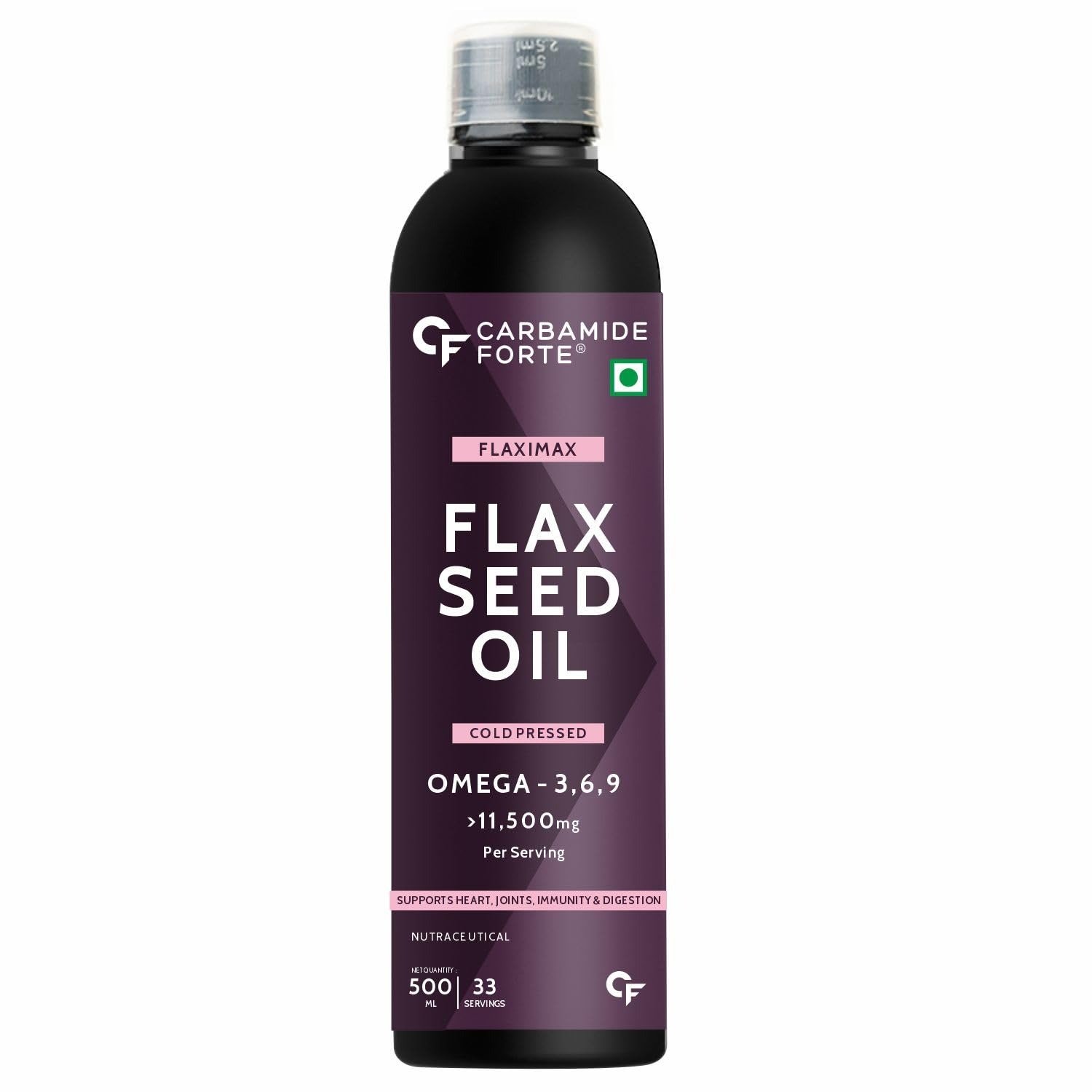 Carbamide Forte Cold Pressed Flaxseed Oil with 11500mg Omega 3 6 9 per Serving for Eating, Skin & Hair Growth – 500ml Vegetarian Oil – Fast Shipping to USA