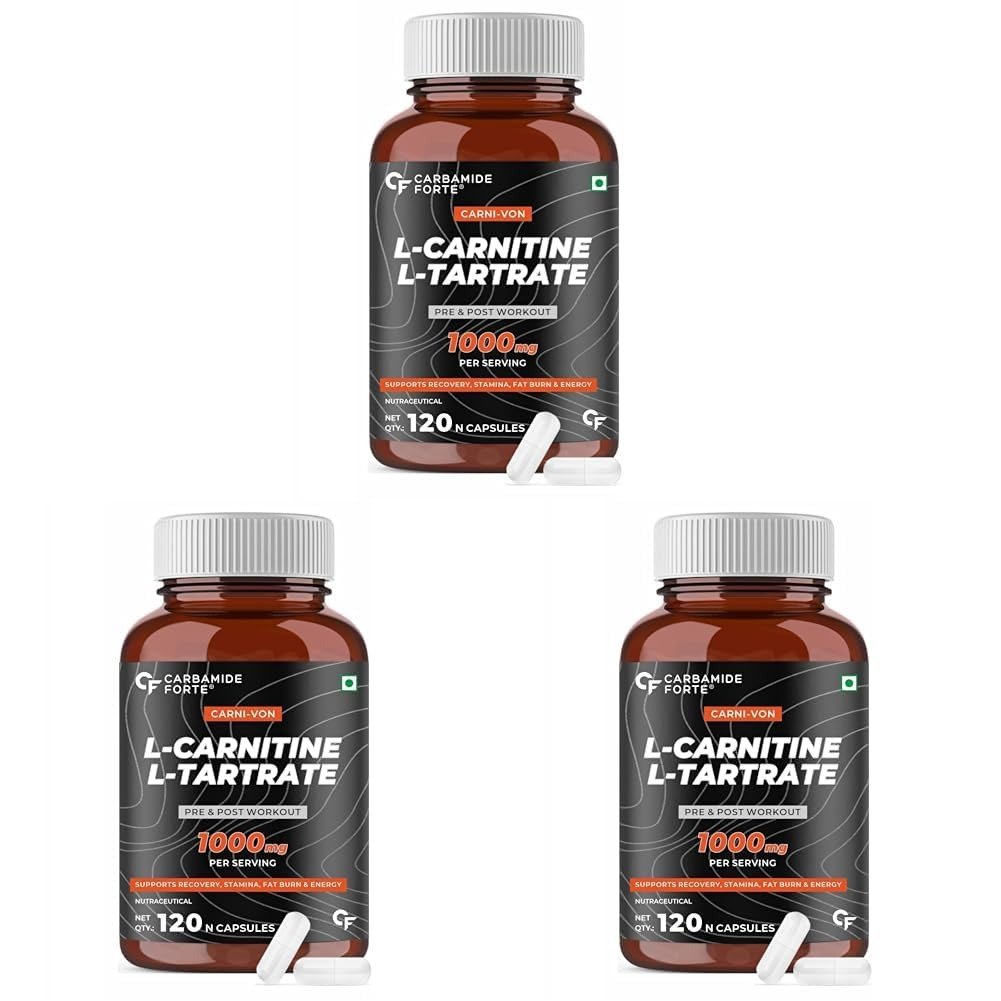 Carbamide Forte L-Carnitine L-Tartrate 1000mg Capsules for Men & Women | Pre Workout Supplement – 120 Veg Capsules (Pack of 3) – Fast Shipping to USA