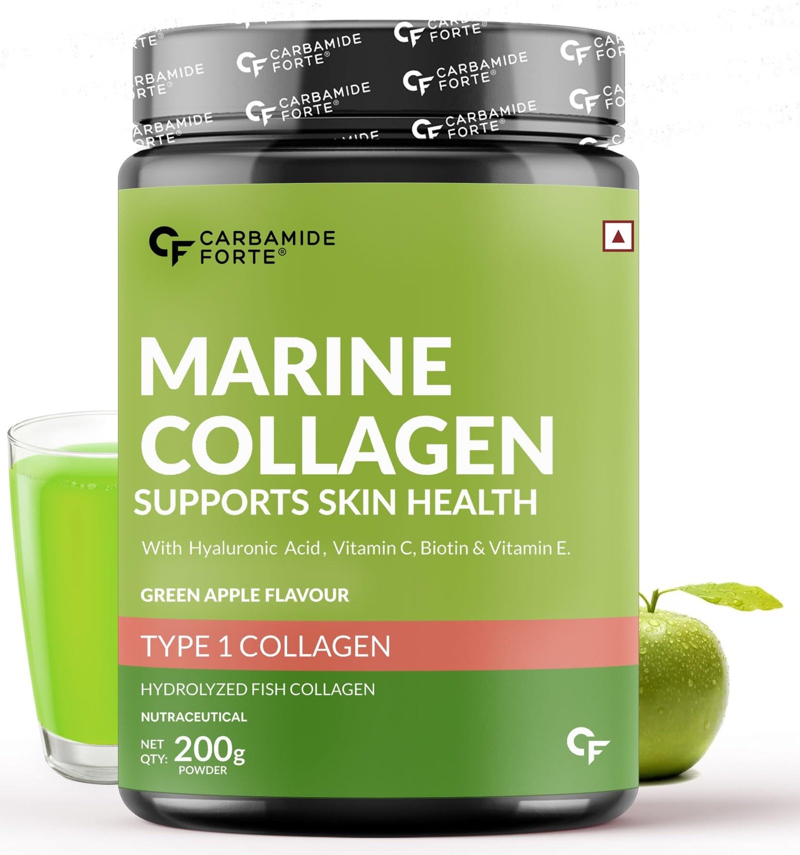 Carbamide Forte Marine Collagen Powder Supplement – for Skin Fish Collagen Powder for Women & Men – 200g Powder – Green Apple Flavour – Fast Shipping to USA
