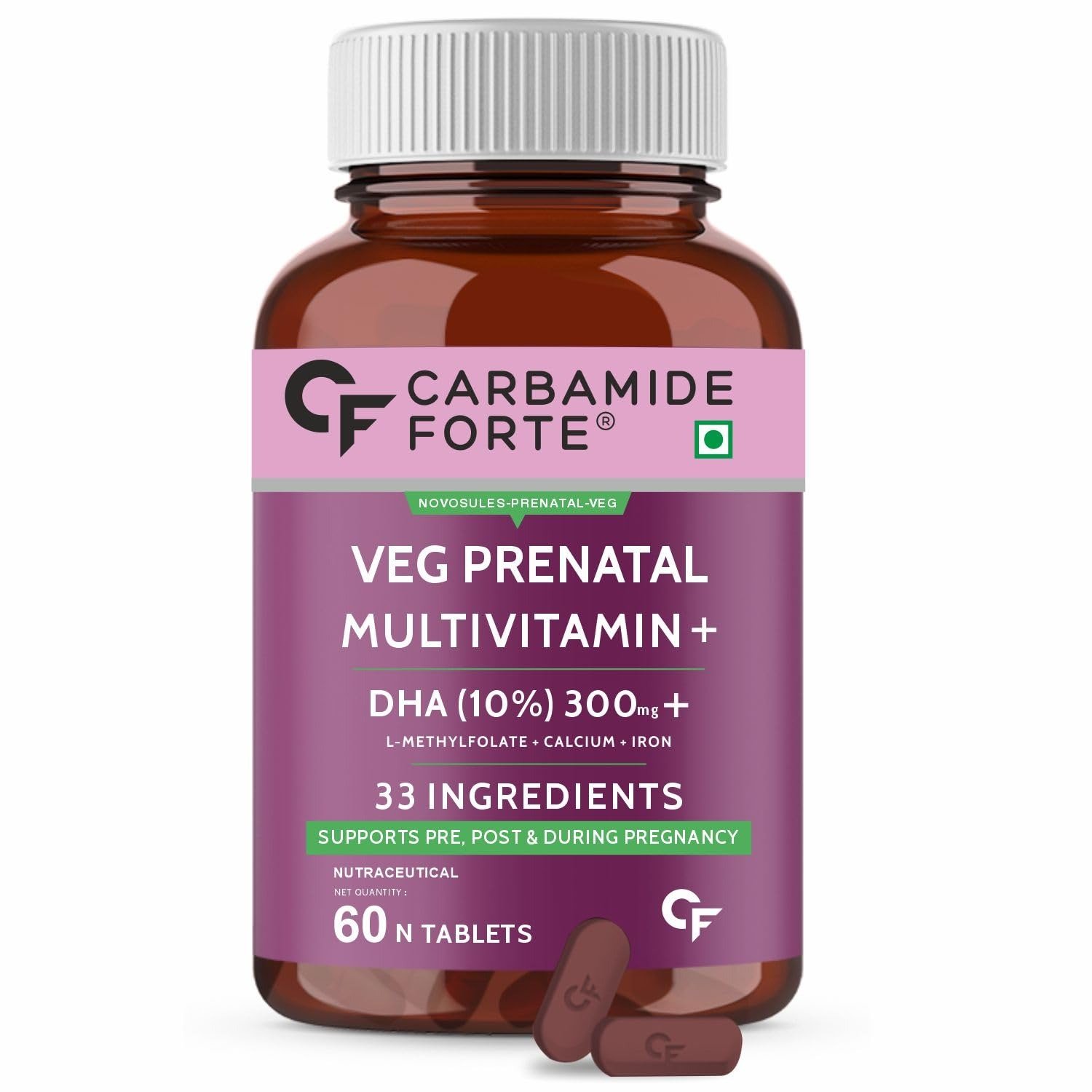 Carbamide Forte Veg Prenatal Multivitamin for Pregnancy with DHA 300mg Multivitamin for Women- 1 count, 60 capsules – Fast Shipping to USA