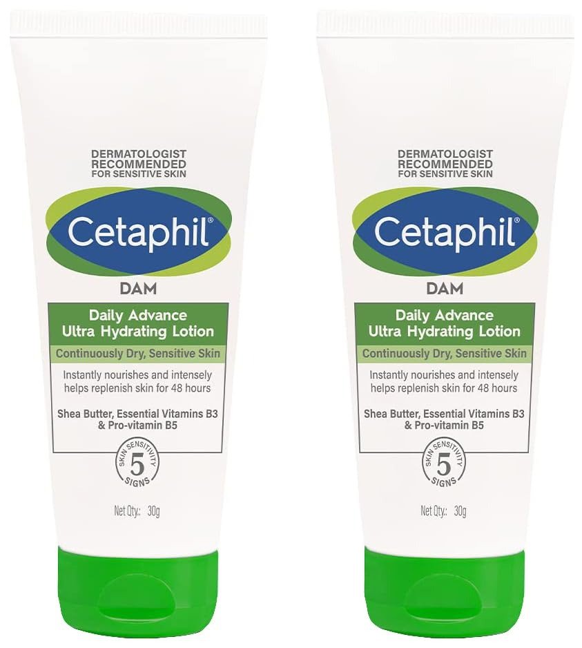 Cetaphil DAM Daily Advance Ultra Hydrating Lotion for Dry, Sensitive Skin| 30 g| Moisturizer with Shea Butter| Non-Greasy, Fragrance-Free| Paraben, Sulphate Free (Pack of 2) – Fast Shipping to USA & Canada