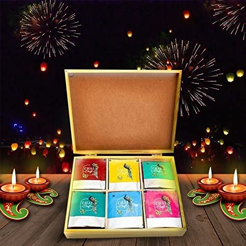 Chai Craft Boxful of Joy | Wooden Gifting Box Herbal Infusion Green Tea, 6 flavors in 1 Box (30 Tea Bags) – Fast Shipping to USA & Canada