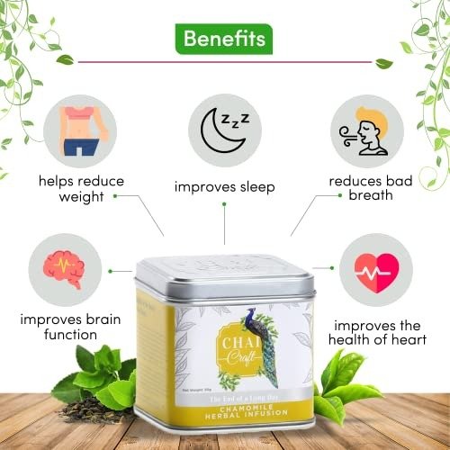 14 reviews for Chai Craft Chamomile Herbal Infusion (50gms) I 100% pure organic loose leaf I SLEEP TEA | Pure Whole Flower Buds of Chamomile | For Anti Anxiety – Herbal Tea – Caffeine Free – Fast Shipping to USA & Canada