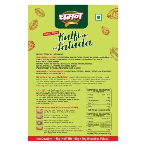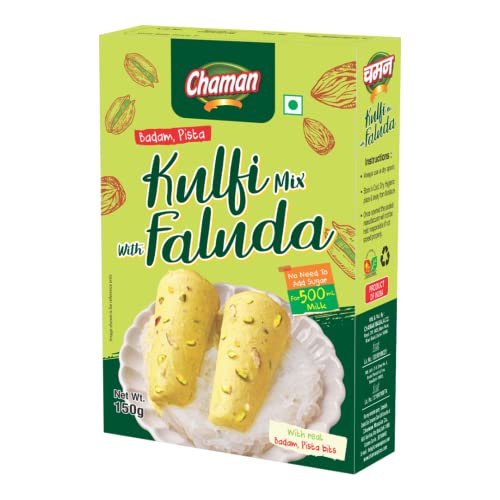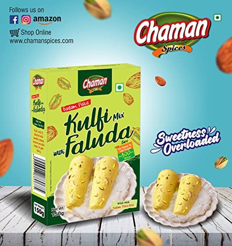 - Chaman Kulfi Powder Mix paired with Instant Faluda/Falooda is a delightful indulgence, conveniently offered in a duo, with each pack containing 150g of the powder mix.