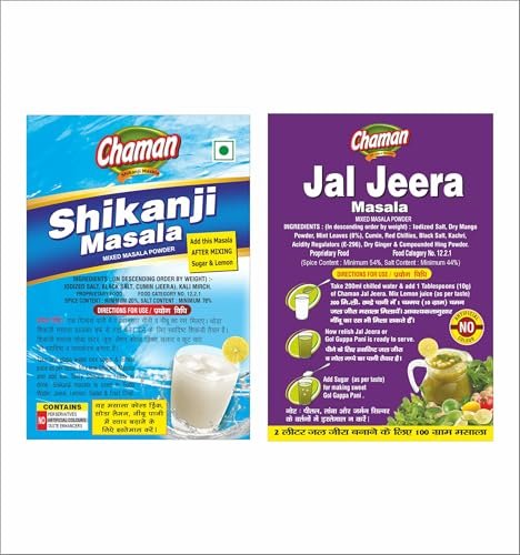 10 reviews for Chaman Masala Combo Pack (Shikanji Masala 100G & Jal Jeera Masala 100G) | Traditional Indian Drinks Masala | Indian Drinks Spices | Refreshing Cumin & Spice Beverage Mix – Fast Shipping to USA & Canada