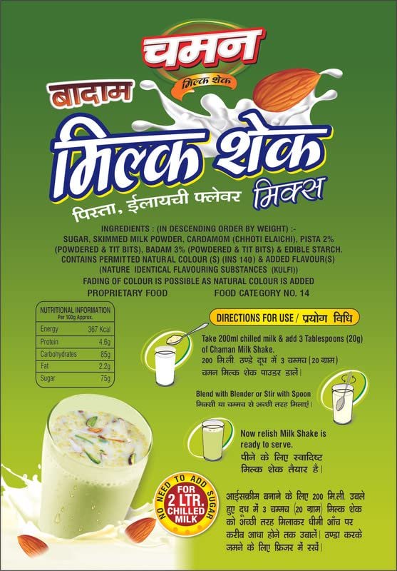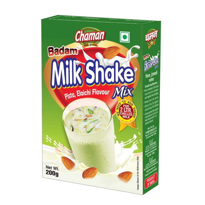 Chaman Pista, Elaichi Flavour Milk Shake Mix Powder with Badam Bits 200 Gram (Pack of 2) – Fast Shipping to USA & Canada