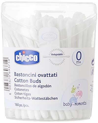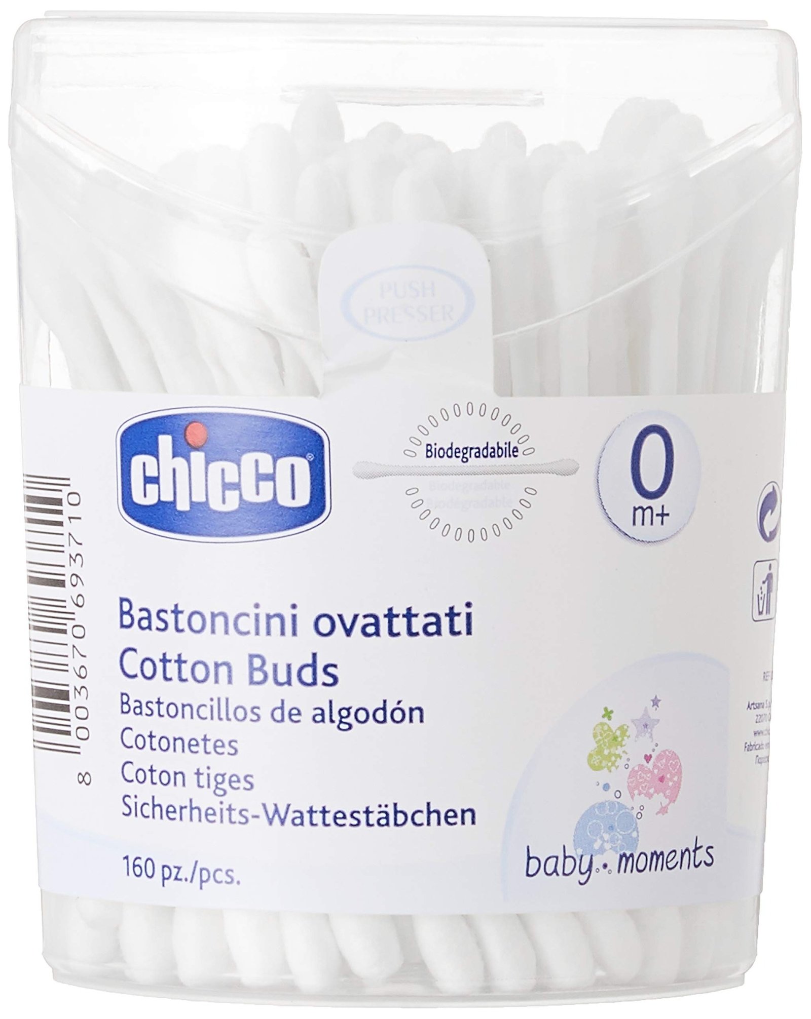 Chicco Cotton Buds, 160 Pieces | For Baby Ear Cleaning | Made Of Paper Stem | Safe and Hygienic | Biodegredable
