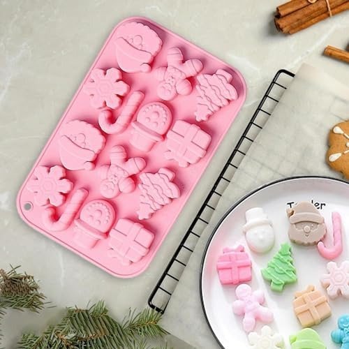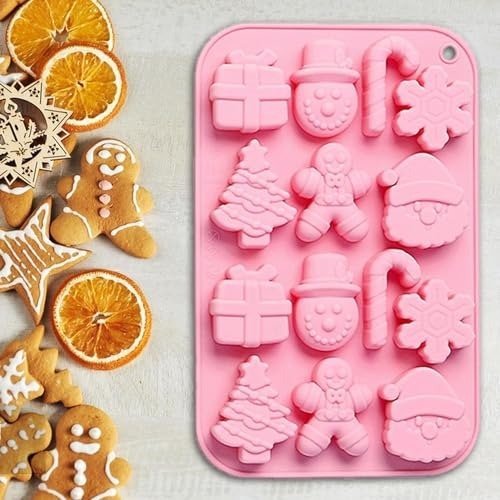 - [ Festive Holiday Baking Molds ] Brimming with winter and Christmas motifs, these baking molds feature shapes such as snowflakes, Santa Claus, candy canes, Christmas trees, presents, gingerbread figures, and snowmen-perfect for all your creative holiday decorating projects.