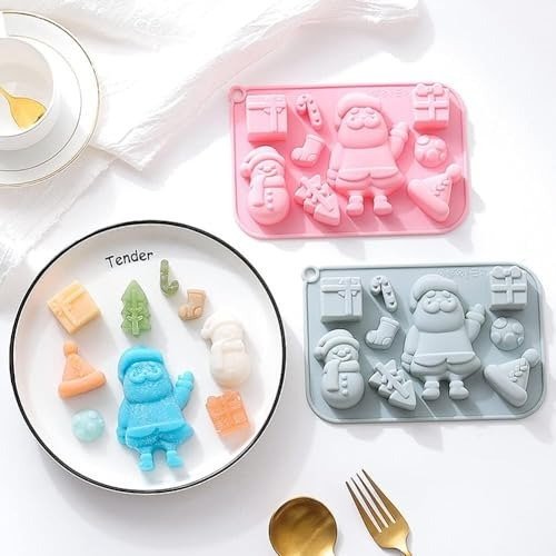 Christmas Chocolate Mould, Candy Baking, 3D Santa Claus, Hat Snowman,Tree, Gift Boxes, Socks, Candy Stick Shape Mold for DIY Handmade Soap Candles Jelly Fondant,Gummy – Fast Shipping to USA & Canada