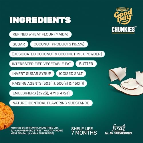 - Enter the world of contemporary treats, Where Good Day Chunkies deliver a delightful beat. With every nibble, a crispy pleasure unfolds, Bursting with tropical coconut, a vision to behold. This isn’t merely a cookie; it’s Chunkies divine, A culinary journey that’s truly worth your time. So seize a Chunkie and embark on a tasty voyage, Savor the bliss of Britannia Good Day Chunkies Coconut!