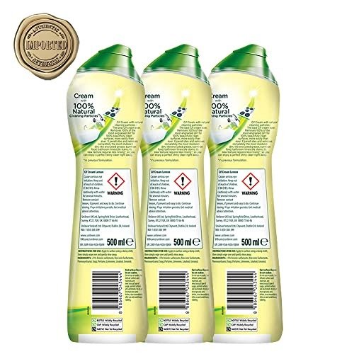 Cif Lemon Surface Cleaner Cream for Kitchen & Bathroom |100% Dirt & Grease Removal With Natural Cleaning Particle For Shiny Surface | Imported |3×500 ml, Yellow – Fast Shipping to USA & Canada