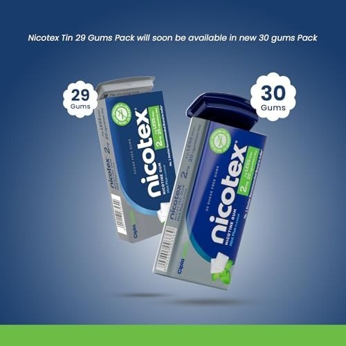Cipla Nicotex Nicotine Sugar Free Mint Plus Gums 2mg | Helps to Quit Smoking | WHO – approved Therapy | 29 Gums each Tin | Pack of 18 – Fast Shipping to USA & Canada