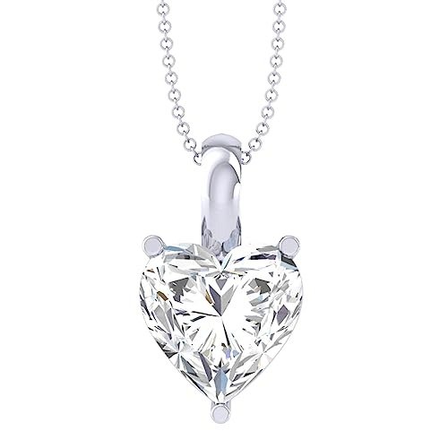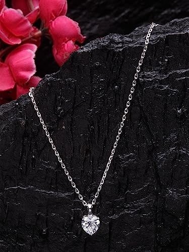 Clara 92.5 Sterling Silver White Gold Plated Heart Solitaire Pendant Chain Necklace | Gift for Women & Girls – Fast Shipping to USA & Canada