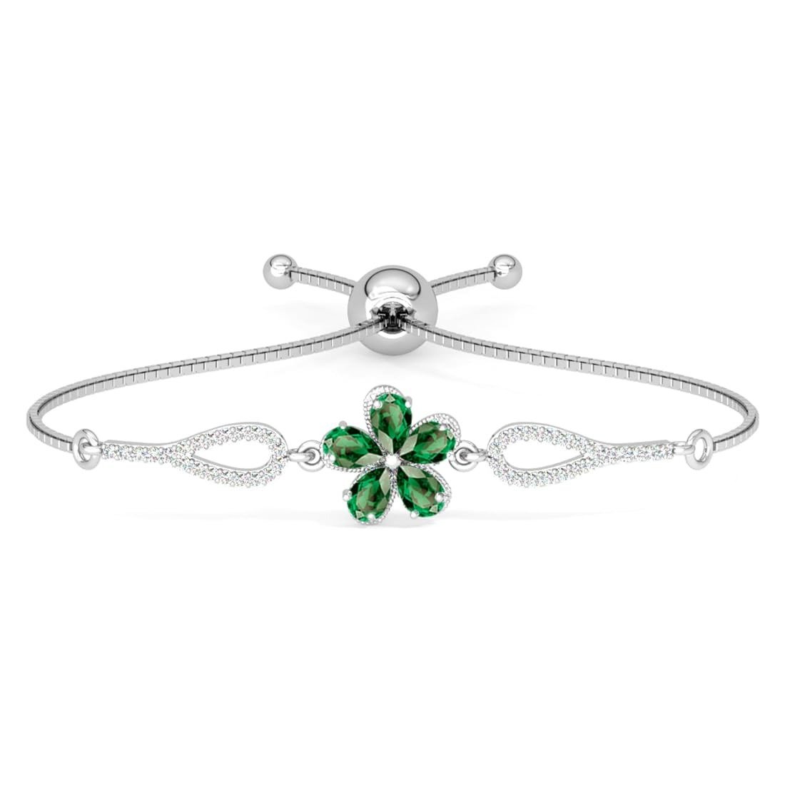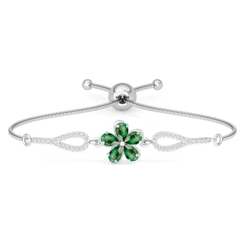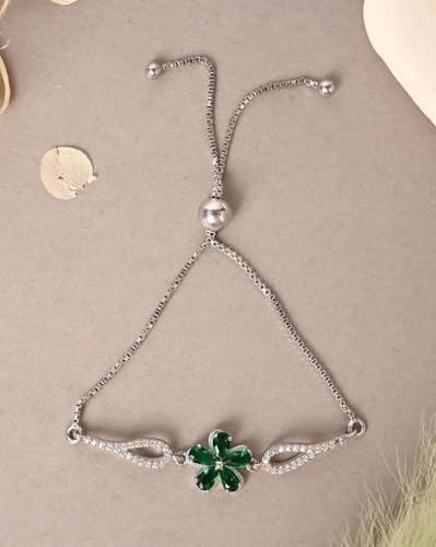 Clara 925 Pure Silver Green Flower Hand Bracelet | Adjustable, Anti Tarnish, Swiss Zirconia | Gift for Women and Girls – Fast Shipping to USA & Canada