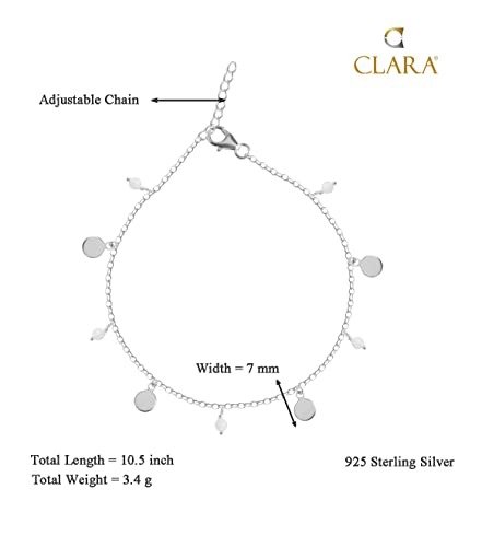 Clara 925 Sterling Silver Anklet Payal (Single) | Adjustable Chain | Gift for Women and Girls – Fast Shipping to USA & Canada