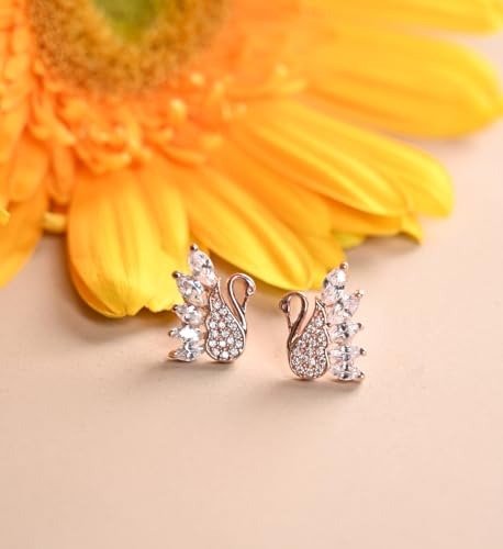 Clara 925 Sterling Silver Dancing Swan Pendant Earrings Chain Necklace Jewellery Set | Rose Gold Plated, Swiss Zirconia | Gift for Women and Girls – Fast Shipping to USA & Canada