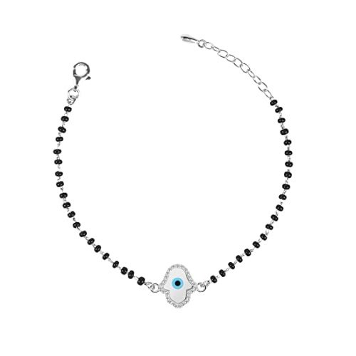 Clara 925 Sterling Silver Evil Eye Hamsa Hand Hand Mangalsutra Bracelet | Black Beads, Rhodium Plated | Gift for Wife For Women – Fast Shipping to USA & Canada