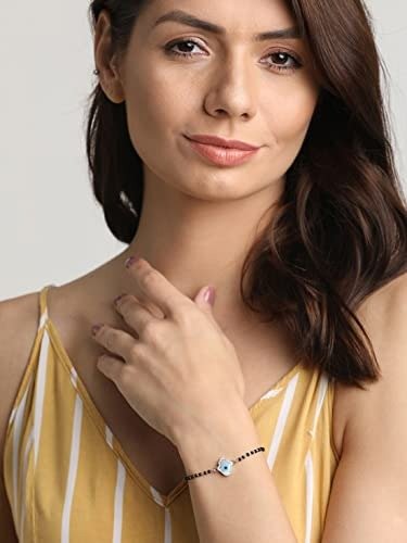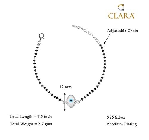 6 reviews for Clara 925 Sterling Silver Evil Eye Hamsa Hand Hand Mangalsutra Bracelet | Black Beads, Rhodium Plated | Gift for Wife For Women – Fast Shipping to USA & Canada