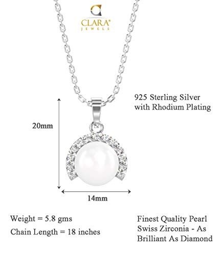 CLARA 925 Sterling Silver Real Pearl Riko Pendant Earring Chain Jewellery Set | Rhodium Plated, Swiss Zirconia | Gift for Women & Girls – Fast Shipping to USA & Canada