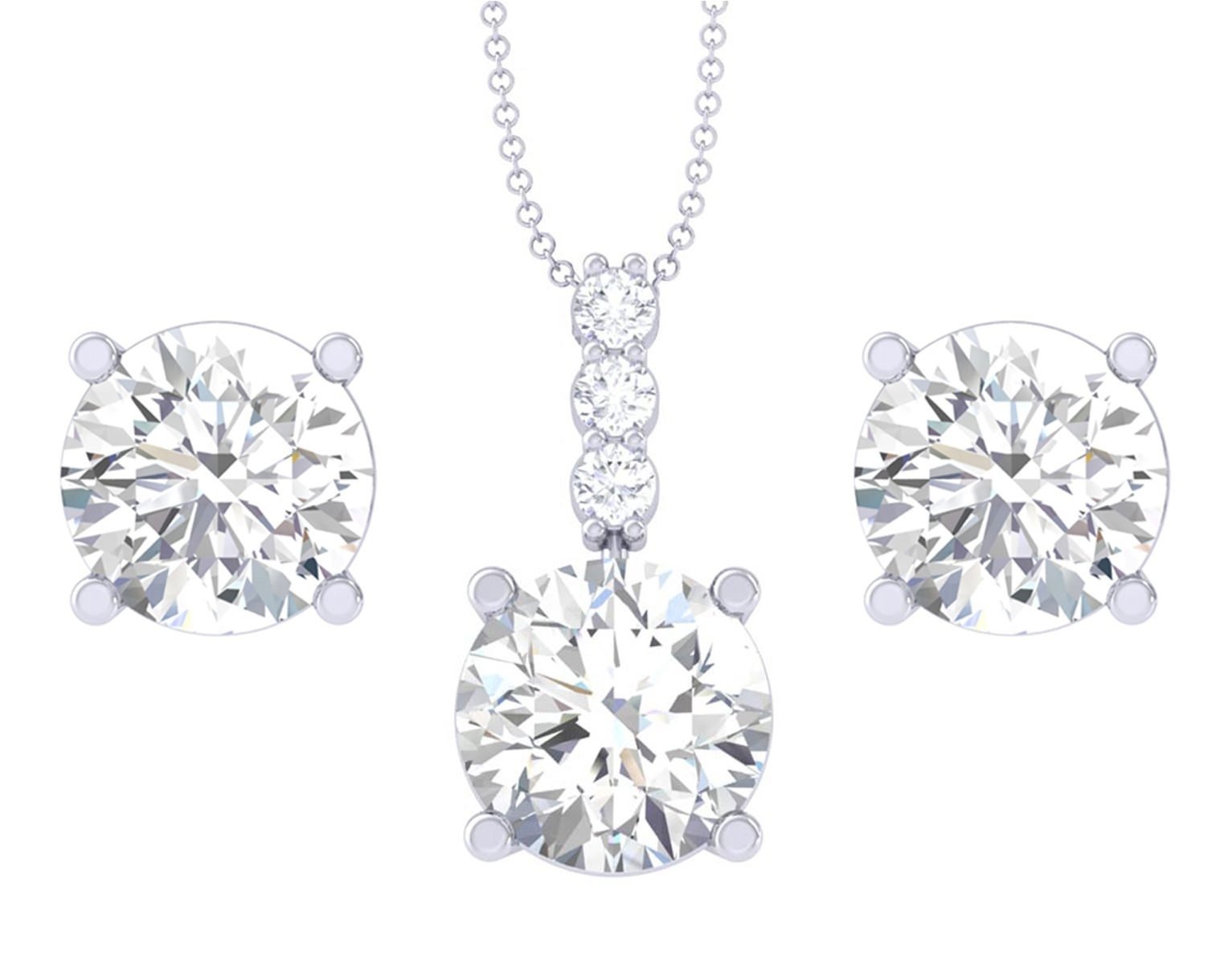 Clara 925 Sterling Silver Round Solitaire Pendant Earring Chain Jewellery Set | Rhodium Plated, Swiss Zirconia | Gift for Women & Girls – Fast Shipping to USA & Canada