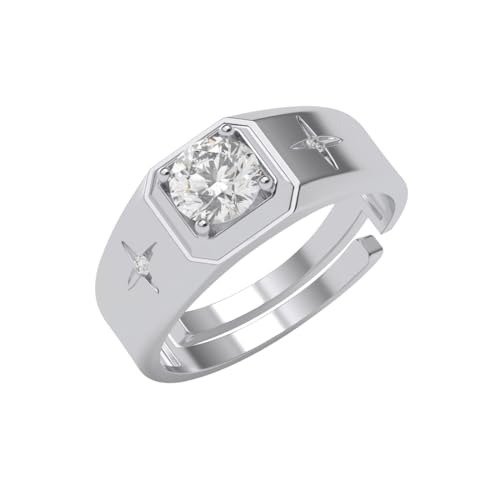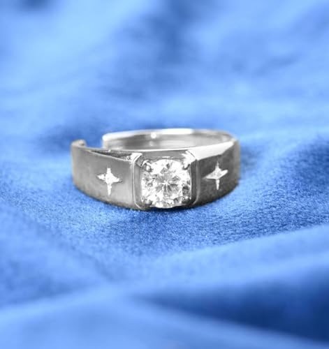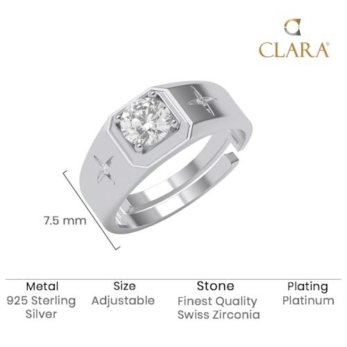 Clara Pure 925 Sterling Silver Star Solitaire Men Ring |Size Adjustable, Platinum Plated, Swiss Zirconia | Gift for Men & Boys – Fast Shipping to USA & Canada