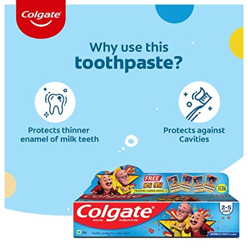 Colgate Kids Toothpaste For 2-5 Years, Motu Patlu, Bubble Fruit Flavour, Gentle Cavity Protection Tooth Paste With 50% Lesser Abrasive Formula For Protecting Against Cavities – 40G – Fast Shipping to USA & Canada