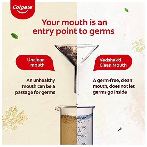 A Clean Mouth Equates to a Healthy You. Your oral cavity serves as a breeding ground for bacteria. These microorganisms can infiltrate your system, heightening the risk of severe health issues such as diabetes, heart attacks, respiratory complications, gastrointestinal disorders, and Alzheimer’s disease. Colgate Swarna Vedshakti combats oral germs directly, preventing them from entering your body. Its distinctive formula is crafted with five Ayurvedic ingredients: Neem, renowned for its gum care properties; Clove, recognized for its strengthening effects; Amla, celebrated for its anti-germ capabilities; Tulsi, which provides freshness; and Honey, ideal for gum massage. Colgate is the most trusted oral care brand in India and holds certification from the Indian Dental Association. This toothpaste is entirely vegetarian, free from sugar, and gluten-free. It is produced in India at our manufacturing facility, which has received the True Zero Waste Platinum Certification.
