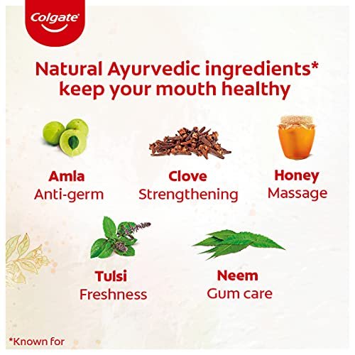 - An exceptional blend formulated with five Ayurvedic components: neem, recognized for its benefits in oral health, clove, celebrated for its strengthening properties, amla, renowned for its anti-germ effects, tulsi, which imparts freshness, and honey, ideal for gum massage.