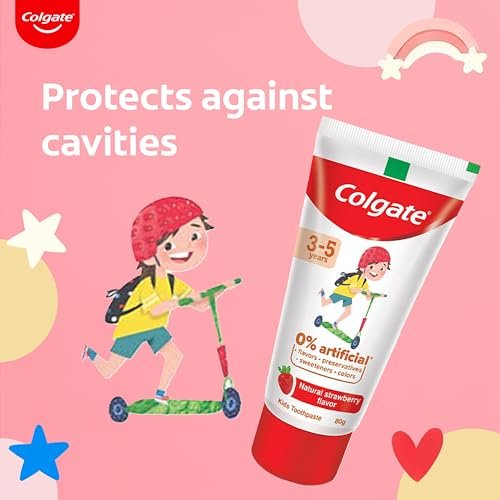 Colgate Toothpaste For Kids (3-5 Years), Natural Strawberry Flavor, Cavity Protection Tooth Paste, With 0% Artificial Flavors, Preservatives, Sweeteners & Colors – 80 Gram Tube – Fast Shipping to USA & Canada