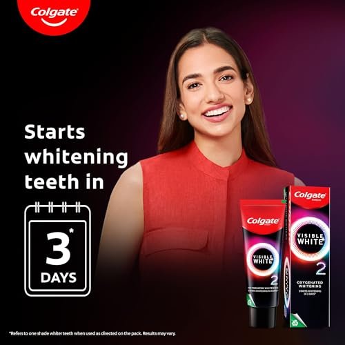 - ACHIEVE NOTICEABLY WHITER TEETH IN JUST 3 DAYS: Colgate Visible White O2 utilizes Active Oxygen technology to begin the whitening process within 3 days, providing you with teeth that are visibly whiter than ever when applied according to the instructions on the packaging.