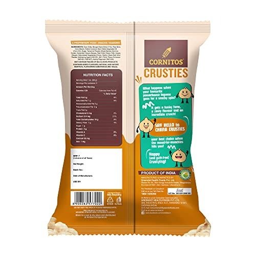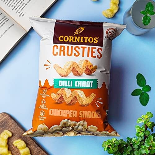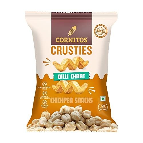 When you are in the mood for some munching, but also looking for a healthy option, you cant go wrong with Cornitos Crusties Chickpea Snacks. The funky zigzag shape and the zesty Dilli Chaat flavour add a snacky spin to Chickpeas. Chickpea Crusties walks you down the streets of Delhis famous Chandni Chowk, and bombards your tastebuds with a burst of tangy, sweet, and spicy notes. Savoury and crunchy, the Chickpea Snack is baked, not fried, and are just right for a happy and guilt-free crustying, any time of the day!