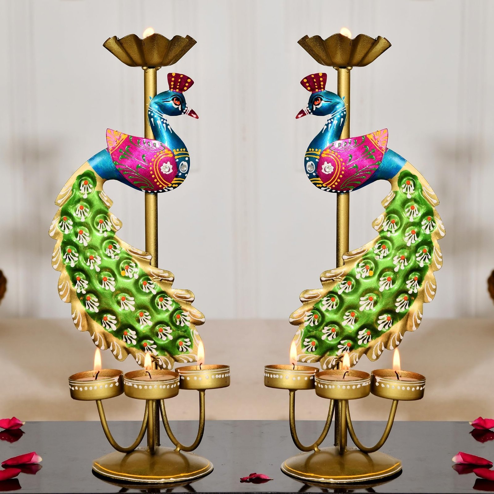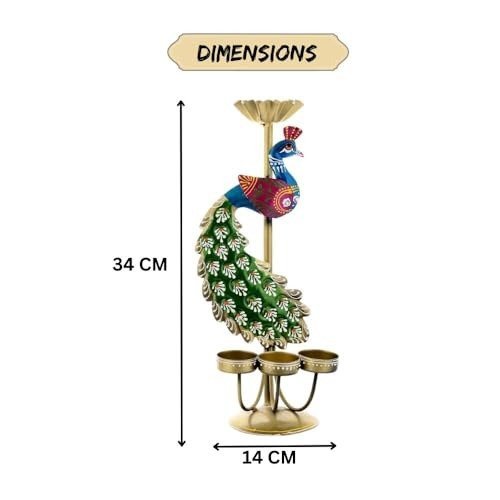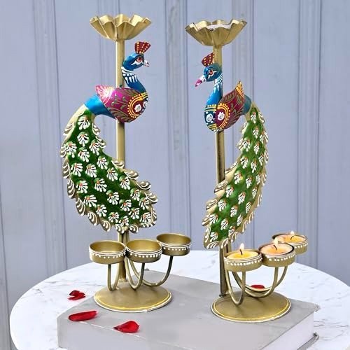 CraftVatika Elegant Metal Peacock Candle Holder -for Home Decoration Diwali, Intricate Design Tealight Candle Holders for Home Diwali Decor, Handpainted Tealight Candle Holder (Double Side) – Fast Shipping to USA & Canada