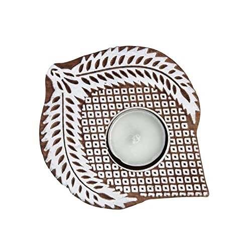 CraftVatika Handmade Wooden Tea Light Candle Holder Stand for Diwali Handpainted Wooden Block Print Leaf Shaped Tlight for Deepawali Decoration Items Candle Holder Set Stand for Indoor Decor Set of 2 – Fast Shipping to USA & Canada