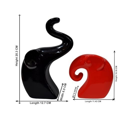 Infuse your home with a striking statement of love, harmony, and artistic flair with this Abstract Elephant Couple Showpiece Set in a bold Black & Red Gloss Finish. Crafted for modern interiors, this elegant elephant Decor set embodies strength, unity, positivity, and togetherness-seamlessly merging meaningful symbolism with luxurious style. Revered worldwide, elephants represent wisdom, good fortune, prosperity, protection, and stability. This contemporary abstract pair reimagines those qualities through a sleek, flowing, and minimalist silhouette, making it a perfect accent for sophisticated, modern, or art-inspired spaces. Whether displayed in your living room, bedroom, office, or presented as a thoughtful gift, this showpiece is sure to spark conversation. The intertwined, curved trunks of the figurines beautifully symbolize connection, unity, and emotional equilibrium. The striking contrast of glossy black and vibrant red enhances its visual impact-black signifying power and sophistication, while red conveys love, passion, and warmth.