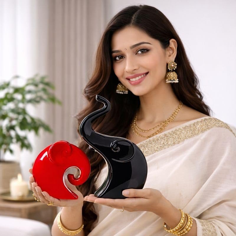• CONTEMPORARY ABSTRACT ELEPHANT DECOR SET – Elegant black and red elephant sculptures featuring a sleek, artistically curved trunk; an excellent addition to modern and upscale interiors. Symbolizing wisdom, prosperity, protection, and unity, these figurines are perfect for Vastu and Feng Shui arrangements. Crafted from high-quality materials, they are durable, resistant to fading, and suitable for daily display.